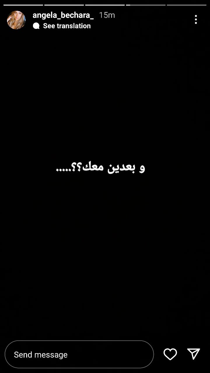كتبت أنجيلا بشارة، طليقة الفنان وائل كفوري، عبر خاصيّة “ستوري” عبر حسابها على “انستغرام”: “إنّ للصبر حدود… وبعدين معك؟.. ما بتتعب؟”
